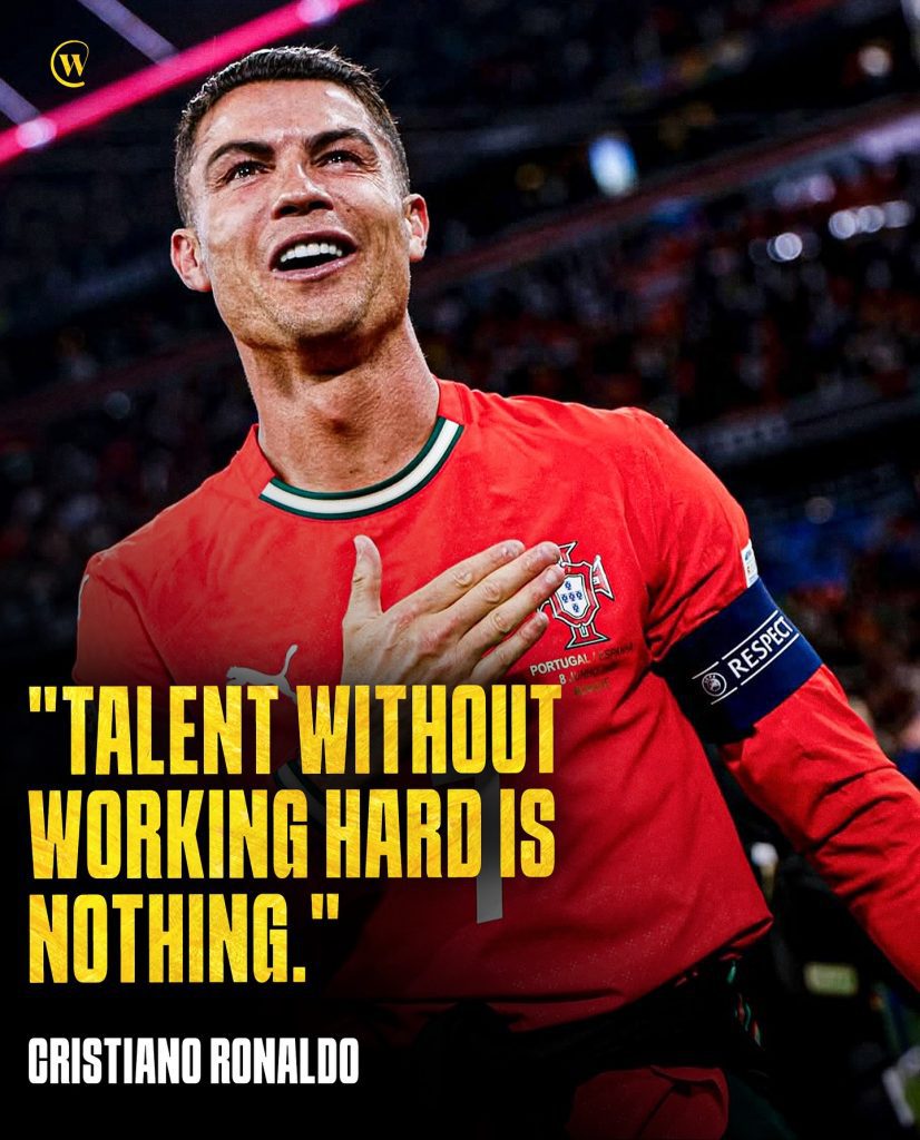 Cristiano Ronaldo is proof that natural ability alone doesn’t guarantee greatness. His extraordinary career was built on discipline, training, and pushing beyond limits. His message is clear: talent might get you started, but it’s hard work that makes you unstoppable.