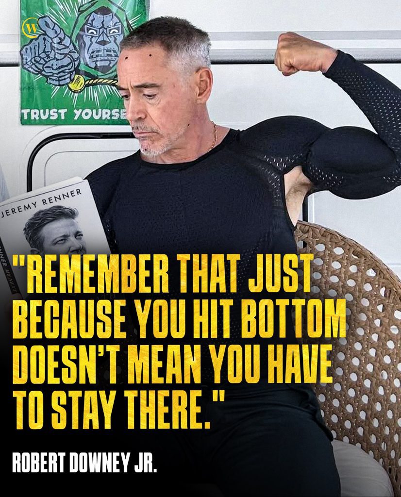 Robert Downey Jr.’s story is one of the most powerful comebacks in Hollywood. He fell hard—struggles with addiction and personal battles nearly ended his career. But he didn’t stay down. Instead, he rebuilt himself and rose to become one of the most beloved actors of our time. His advice is a reminder that rock bottom is not the end, it’s a place to push off from. No matter where you are, there’s always a way back up.
