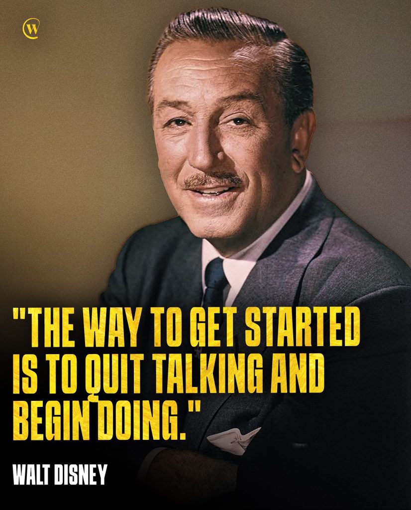 Walt Disney was a dreamer, but more importantly, he was a doer. His words remind us that ideas are meaningless without action. Talking about plans doesn’t move you forward—starting does. Take the leap, no matter how small the first step may seem.