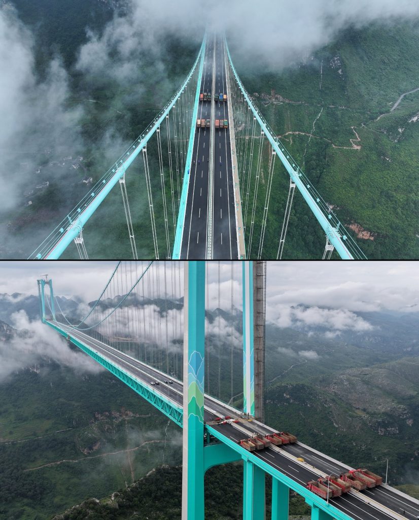 Standing on the bridge, drivers will see a landscape that few people in the world ever get to experience from that angle. Clouds drift below, mountains rise in the distance, and the river cuts far beneath the deck like a thin silver line. It’s a reminder that human determination and imagination can create connections even in the most challenging environments.