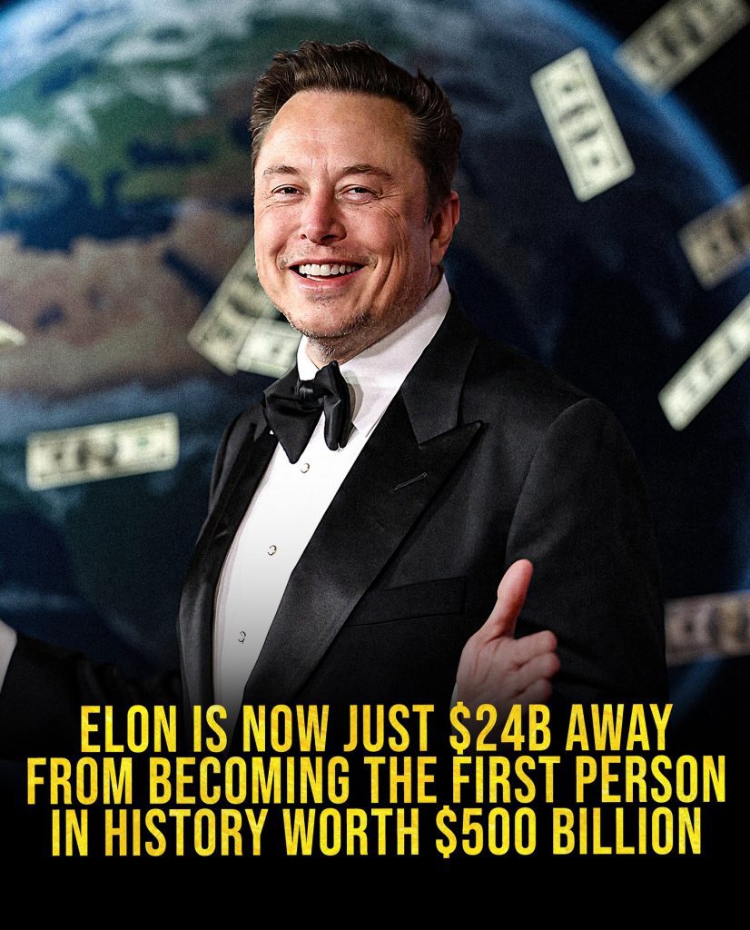 Elon Is Now Just $24 Billion Away From Becoming the First Person in History Worth $500 Billion