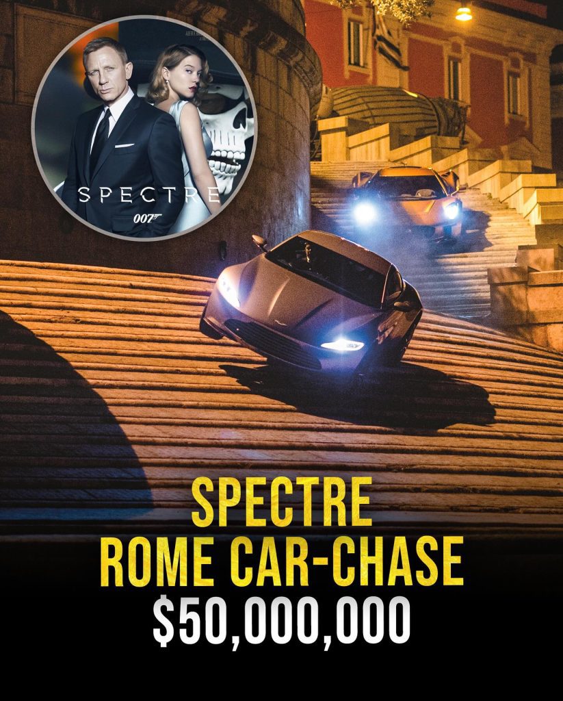 James Bond films are famous for glamorous locations and extravagant stunts, but Spectre went even further. The thrilling Rome car chase, featuring Aston Martins and supercars tearing through historic streets, cost about $50 million. The combination of permits, vehicle destruction, and safety measures made this chase one of the priciest in cinema.