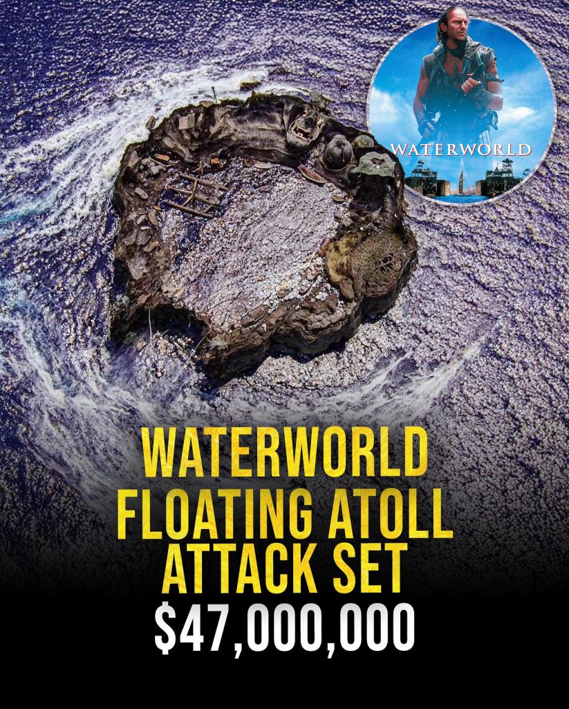 Kevin Costner’s Waterworld may have had mixed reviews, but its ambition was undeniable. The massive floating atoll set built for the attack sequence cost an estimated $47 million, making it one of the most expensive practical sets ever constructed for a movie.