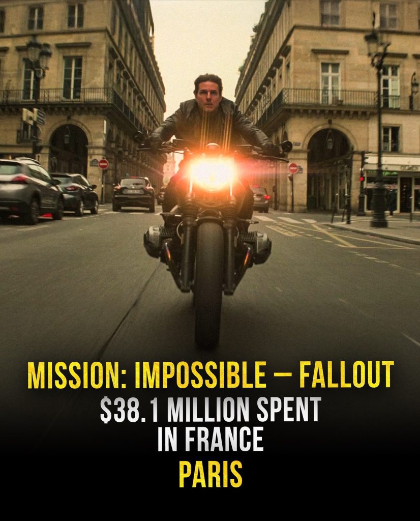 Paris has a way of stealing scenes — and budgets. Tom Cruise’s Mission: Impossible — Fallout staged elaborate chases and stunts amongst Parisian boulevards and historic architecture. The $38.1 million spend in France was staggering but understandable when you consider the complexity: shutting down avenues in a dense, tourist-filled capital, coordinating with municipal authorities and heritage officials, ensuring monuments are protected, and hiring large teams of security and traffic controllers.