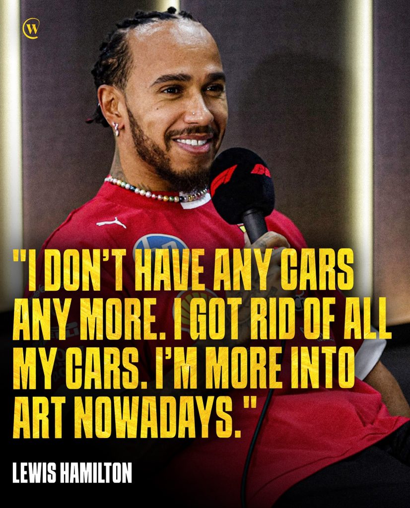 Hamilton explained his decision with honesty and simplicity. “I don’t have any cars any more. I got rid of all my cars. I’m more into art nowadays.” That statement alone says everything. Cars, once a passion and a showcase of success, no longer hold the same meaning for him. Instead, he has shifted his energy toward art and creativity, appreciating beauty in forms that aren’t tied to speed or horsepower.