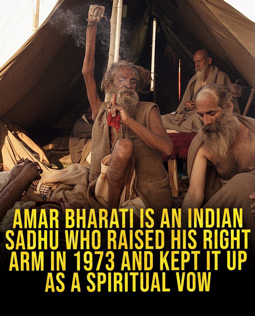 Amar Bharati’s choice was not about making headlines. It was about making a statement to himself and to the world around him. In India, where sadhus—holy men—often renounce worldly possessions and comforts, vows like his are extreme but deeply symbolic. By choosing to keep his arm raised, he turned his body into a canvas of faith, endurance, and determination.