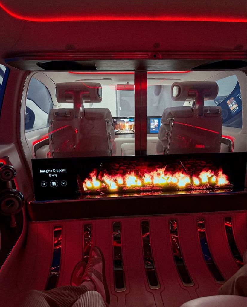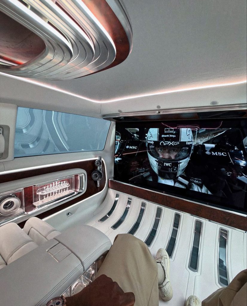 But the Vision V isn’t just about entertainment — it’s about escape. The seats recline all the way into a bed, allowing passengers to lie flat and unwind as the world glides past. The rear section can be completely sealed off from the driver by a smart-glass partition that turns opaque at the touch of a button, giving you total privacy whenever you need it. It’s the kind of thoughtful detail that makes this concept feel more like a five-star hotel suite than a car.