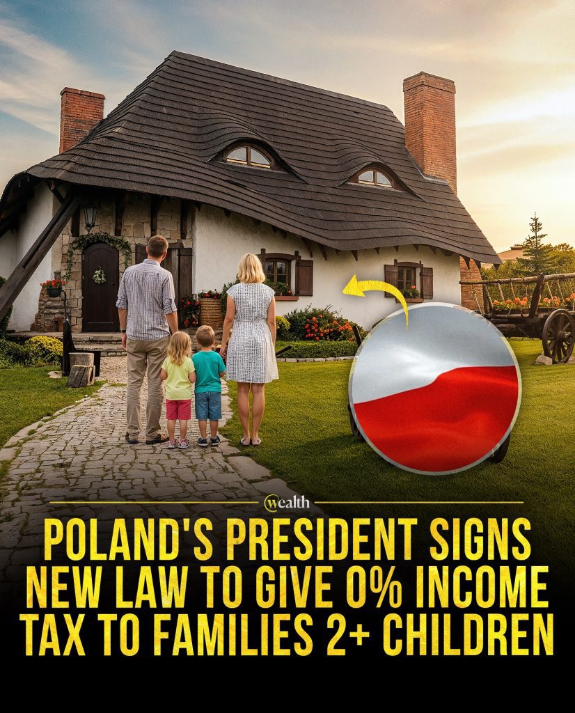 Poland just made one of the most family-focused policy moves in Europe, offering a major incentive to parents raising children. Under a new law signed by President Andrzej Duda, families with two or more kids will now pay 0% income tax on their earnings — a decision designed to both ease financial pressure on households and address one of Europe’s growing demographic challenges: declining birth rates