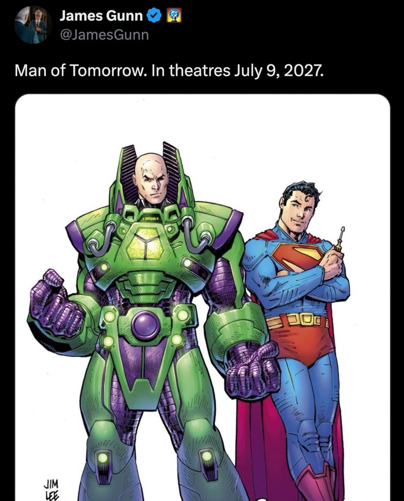 James Gunn: “Man of Tomorrow. In theatres July 9, 2027.”