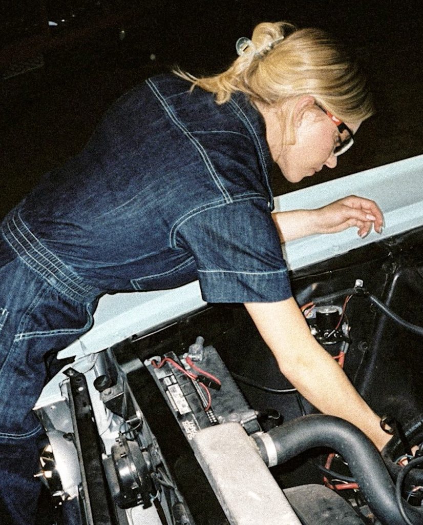 Her passion for cars began long before the Hollywood lifestyle. Growing up in Spokane, Washington, she wasn’t raised in a family that was heavily invested in Hollywood dreams. Instead, she was introduced to mechanics in a much more practical way. Her great-grandfather owned an old Ford F-100, and Sydney learned some of her first lessons about cars on that truck. It was her family who made sure she knew the basics before she ever had a license. Her mom insisted she be able to change a tire and check the fluids in her car on her own. It might have started as a form of responsibility, but for Sydney, it turned into something much bigger. Those small moments of learning built a foundation of curiosity that eventually grew into a full-fledged passion for restoration and vintage cars.