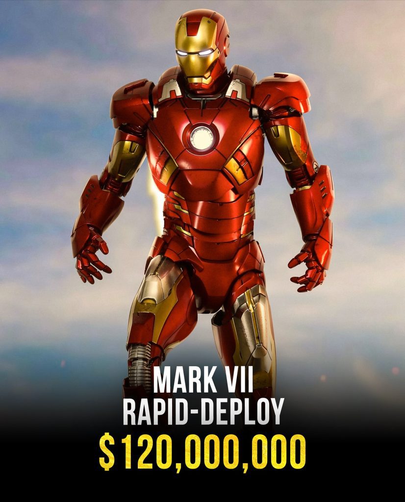 Speed met strategy in the Mark VII. Built for instant assembly, this armor could deploy around Tony in seconds and counter incoming missiles midair. Worth around $120 million, it was designed for precision warfare. This was the suit that saw Tony through some of his toughest battles — and every time, it proved that his greatest weapon was not technology, but the mind behind it.
