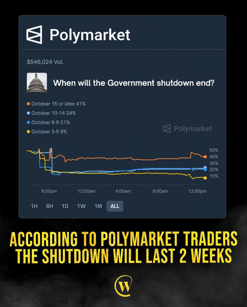 According to Polymarket Traders, the Shutdown Will Last 2 Weeks