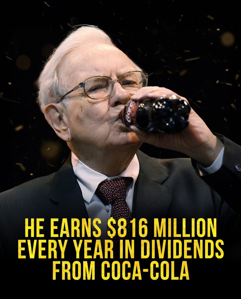 One of Buffett’s most famous investments is Coca-Cola. He bought shares decades ago and today earns about $816 million every year just in dividends from the company. It’s a perfect example of his philosophy: buy businesses you believe in, and hold them forever. While markets rise and fall, Coca-Cola has consistently given him returns that are now bigger than most people’s lifetime earnings.