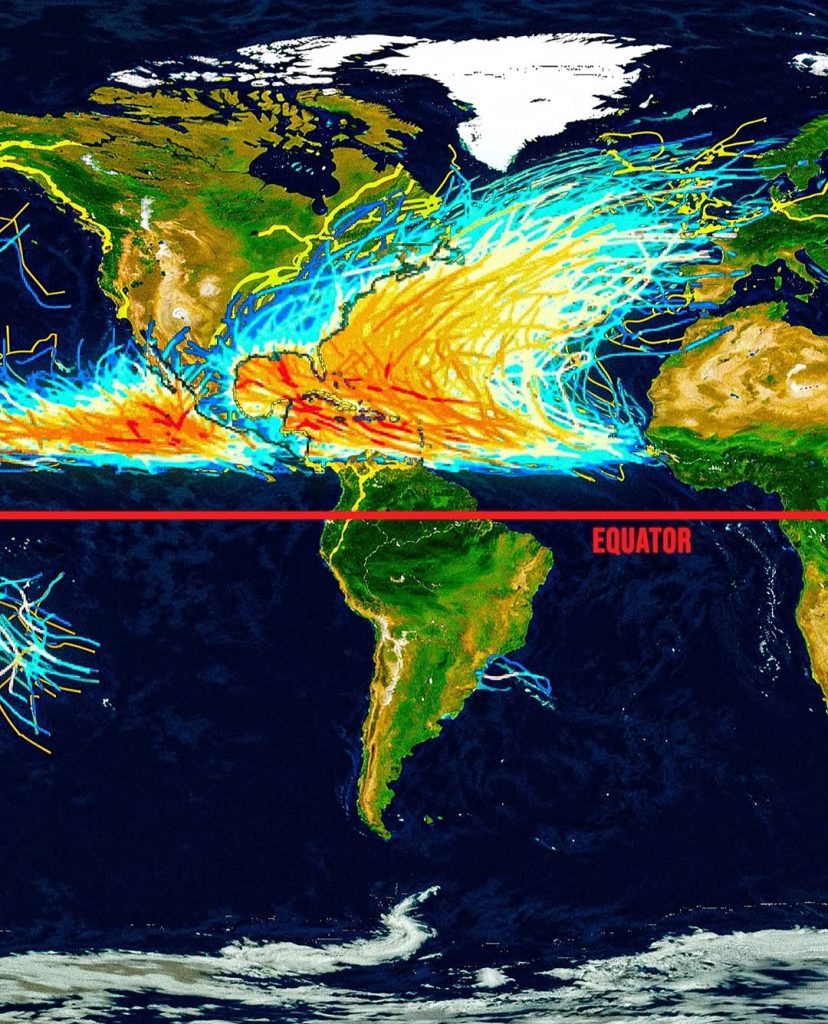 If you look at maps that track hurricanes over the decades, you’ll notice their paths are spread widely across both hemispheres. In the northern hemisphere, they cut through the Atlantic and Pacific Oceans, carving tracks toward the Caribbean, North America, and East Asia. In the southern hemisphere, they roam across parts of the Indian Ocean and sometimes even head toward Australia. But at zero degrees latitude, where the equator divides our planet, there is nothing. No tracks. No exceptions. The record books confirm the same thing: there has never been a hurricane that has crossed the equator, not once in all of recorded history.
